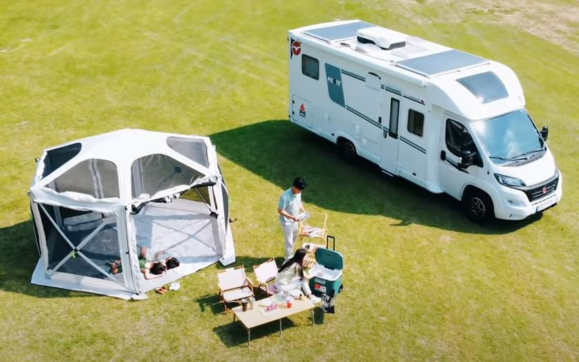 ONLY 3619만의 특징이라고 하면 - 시원하게 천장을 개방할 수 있고, 카라반 및 차량 (RV) 들과의 자유로운 결합 (특허 출원),