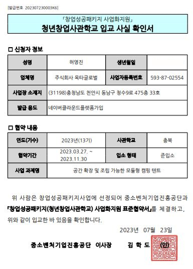 해당 사업을 통해 옥타텐트에 필요한 온라인마케팅, 온라인컨텐츠제작 등 국내에서 필요한 컨텐츠를 생산하는데 도움을 얻어